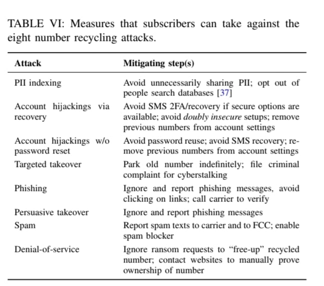 Kevin Lee & Arvind Narayanan, researchers from the Department of Computer Science and Center for Information Technology Policy at Princeton University, conducted a study on the security & privacy risks of number recycling. They sampled 259 phone numbers available to new subscribers at two major carriers and found that;